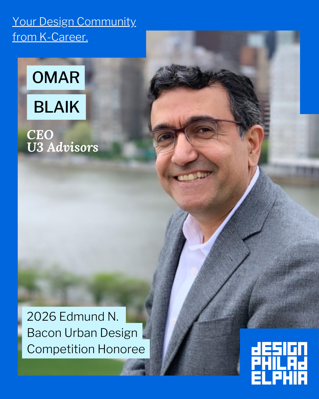 We are pleased to announce that in 2026, U3 Advisors’ founder and CEO, Omar Blaik, will receive the prestigious Edmund N. Bacon Urban Design Award from DesignPhiladelphia, recognizing his many years of working to design, plan, and build great places. Please join us in congratulating him for this remarkable and well-deserved honor.